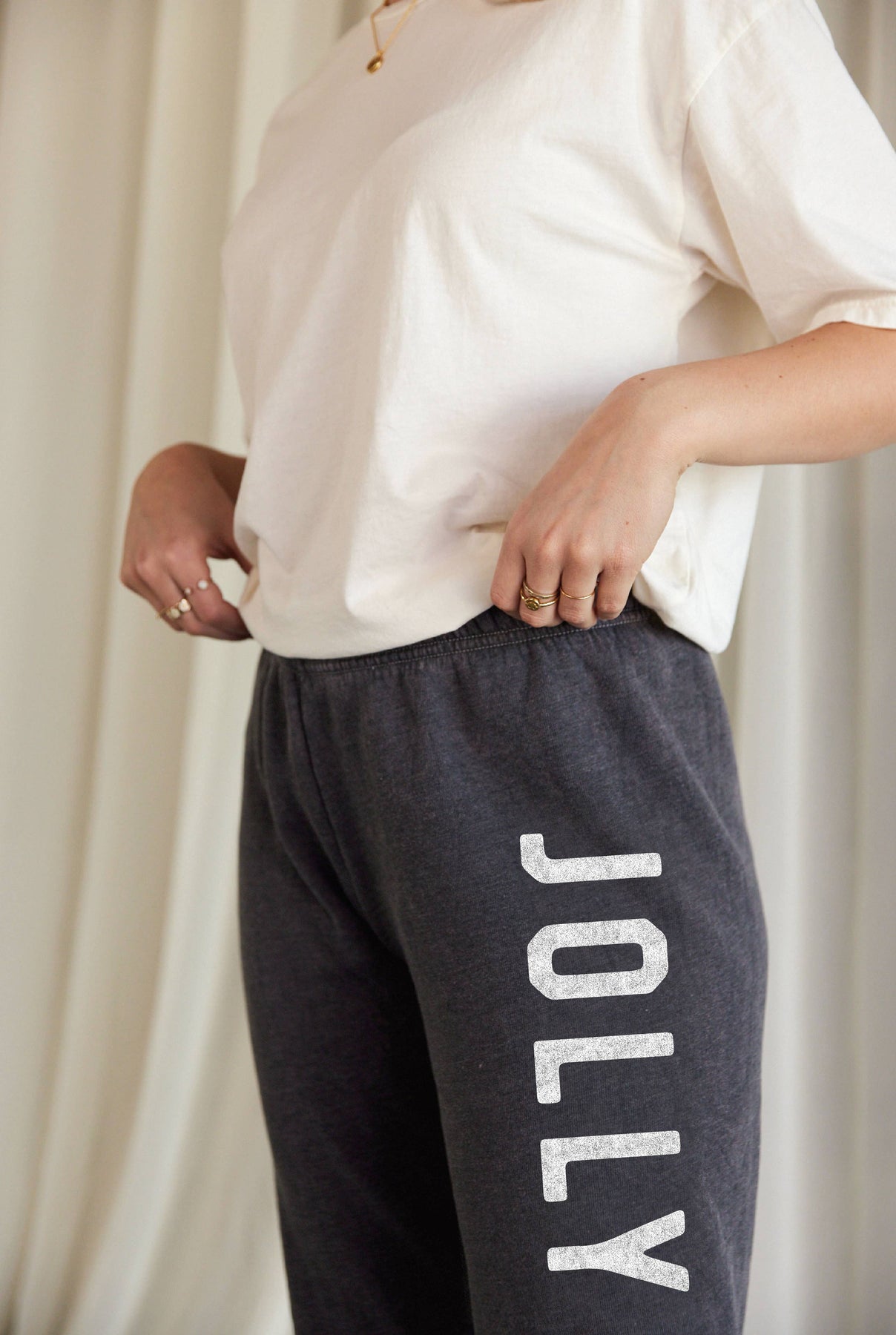 JOLLY Mineral Jogger Sweatpants Details: -Mineral Washed -All items are slightly different because of the dying process of the garment. -Relaxed Comfortable Fit -Elastic waistband/bottom -Hidden Twill draw-cord for adjustable Waist -Remarkably Soft Fleece
