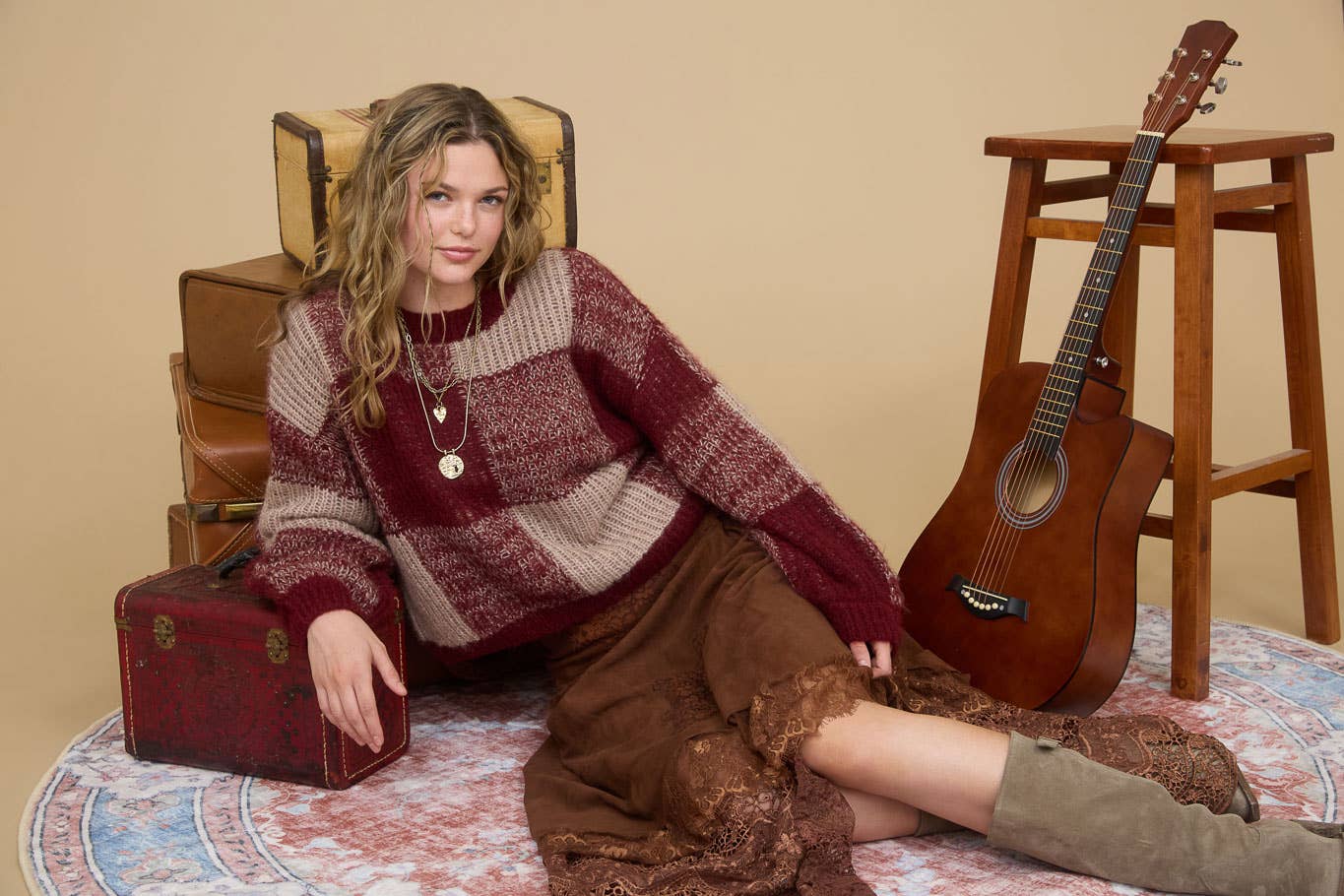 The Cabin Sweater is the definition of cozy comfort — featuring an oversized plaid knit, drop shoulders, and a classic crew neckline. Perfect for layering on chilly days or curling up fireside with your favorite book.