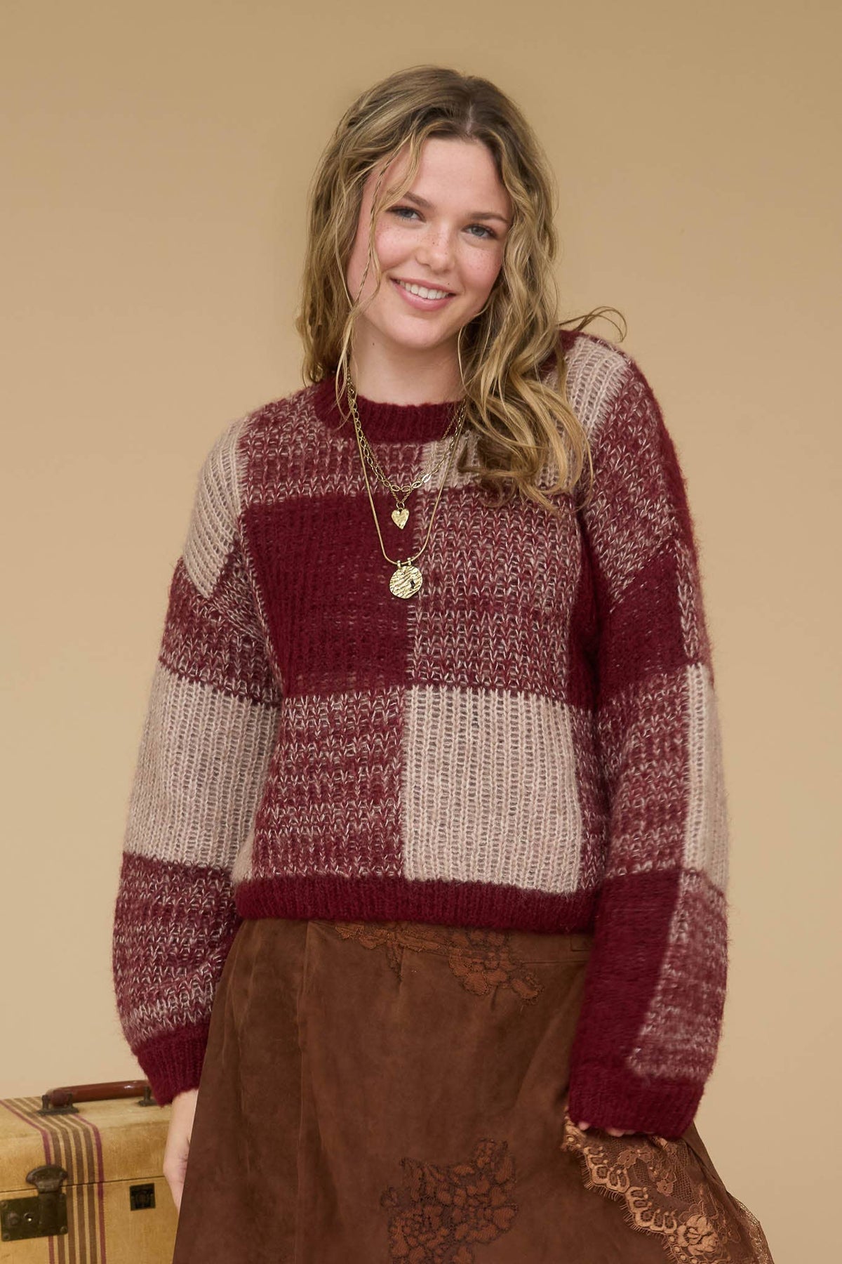 • Plaid knit pattern