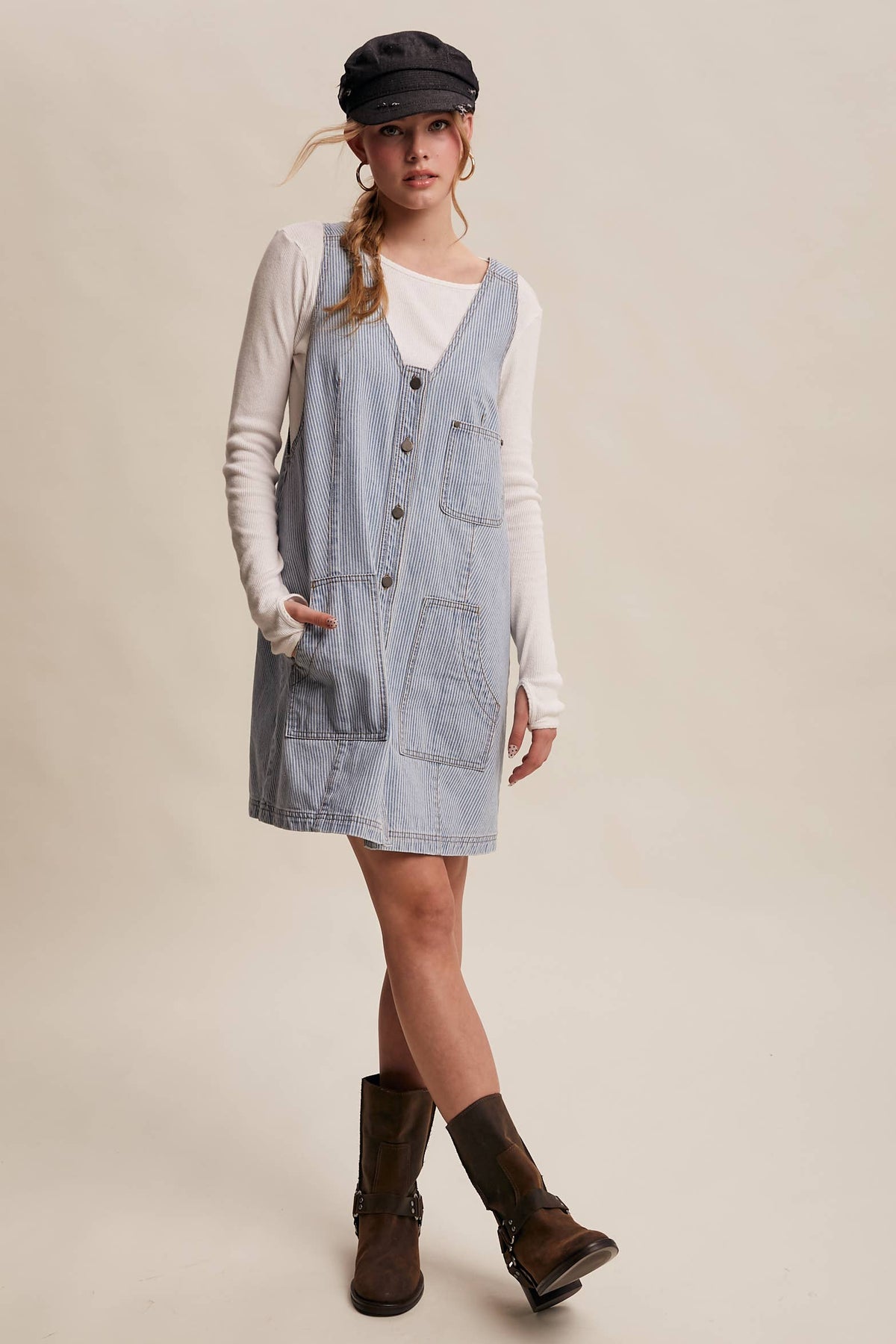 Easy, breezy, and a little vintage—this striped denim button-front dress is your new go-to for casual cool. Lightweight, relaxed, and full of pockets (yes, real ones), it’s made for layering and weekend wandering.