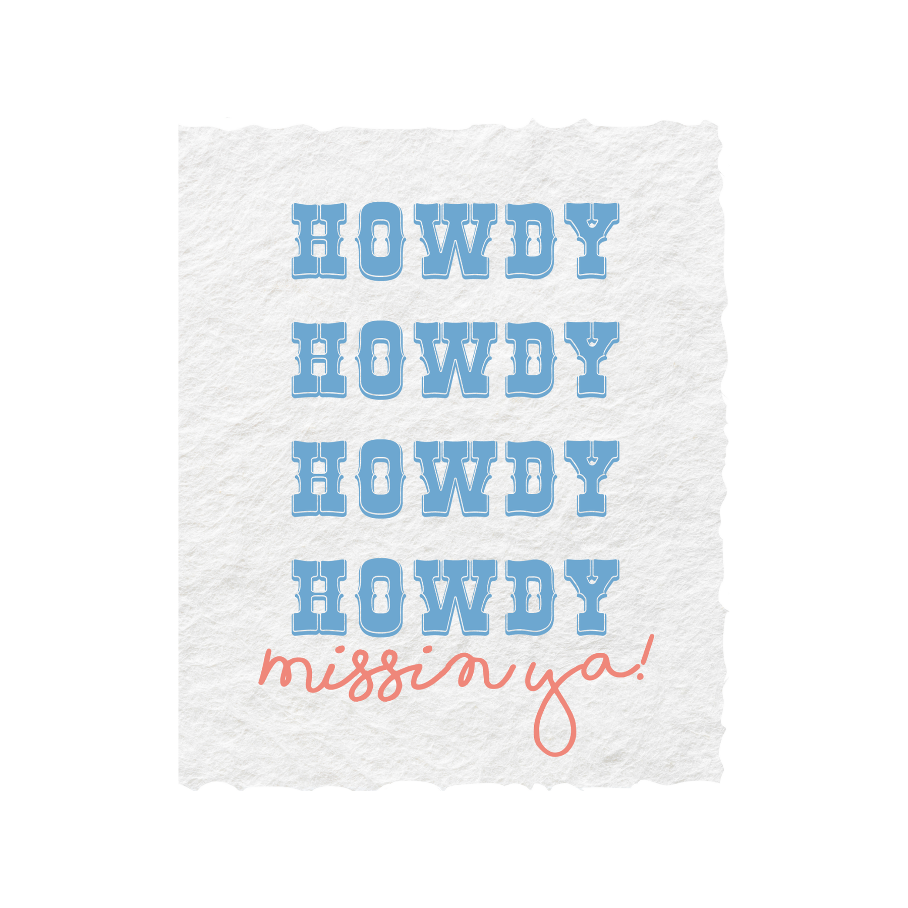 Eco-friendly, hand-printed, and made with upcycled cotton paper. Blank on the back, envelope included. Yeehaw.
