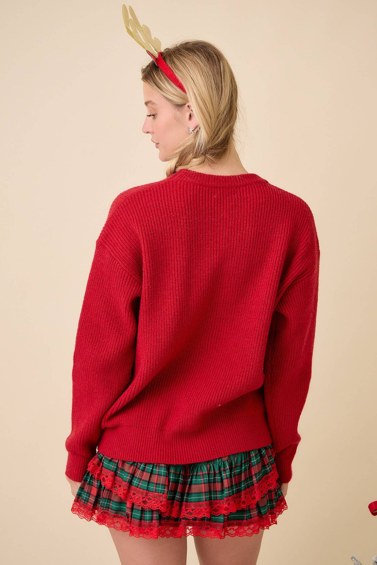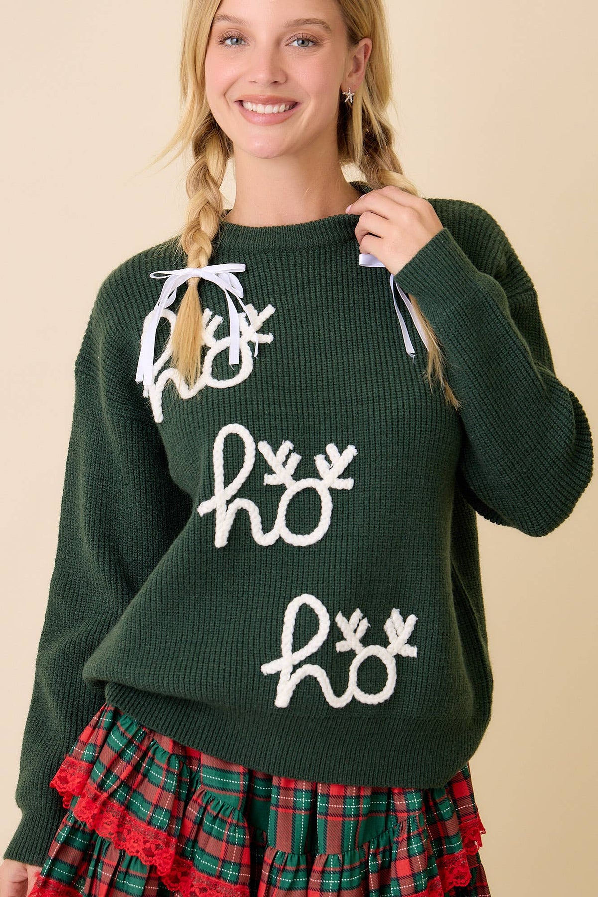 Bring festive cheer with our Ho Ho Ho Reindeer Knit Sweater!