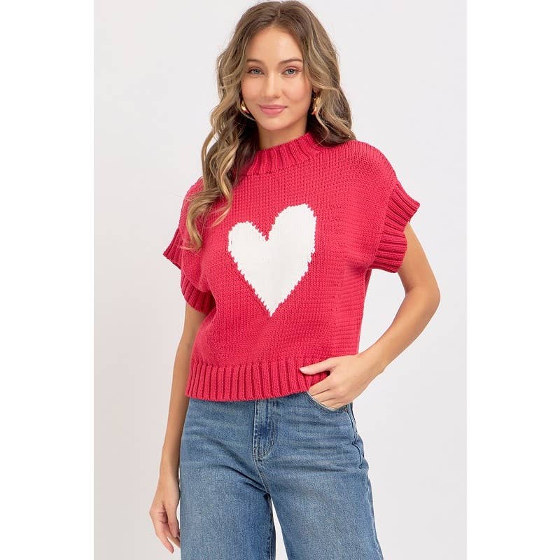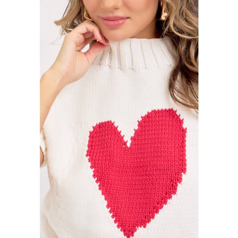 A cozy, chunky knit heart sweater featuring a relaxed, boxy fit and mock neck design. This Valentine sweater is soft, comfortable, and perfect for casual winter outfits, date nights, or festive layering. The bold heart detail adds a playful, feminine touch while still being easy to style with denim.